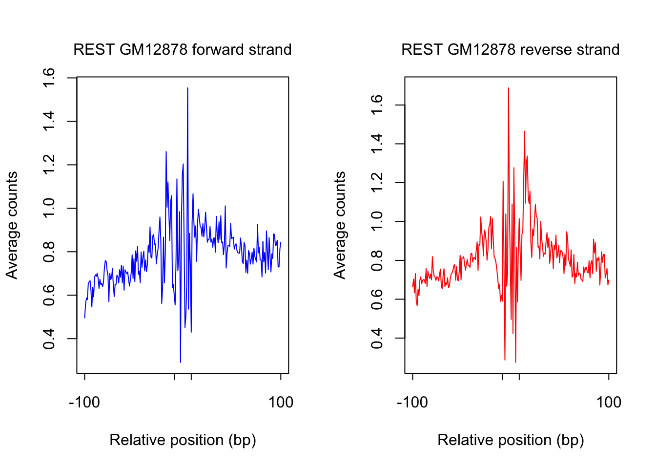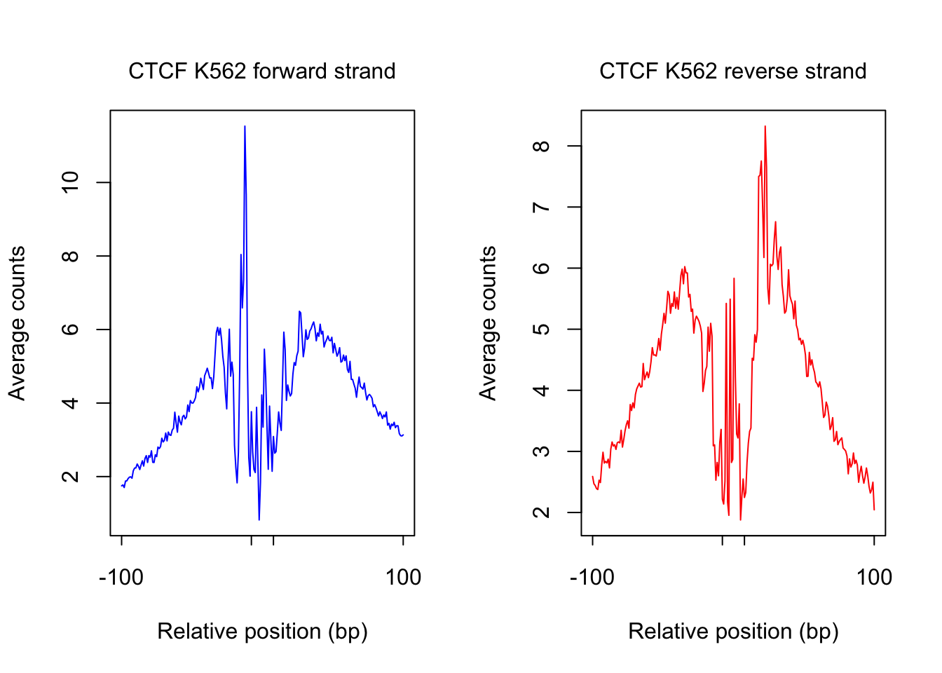 mtext(text = paste(tf_name, cell_type, "forward strand"), side = 3, line = 1, cex = 1)
