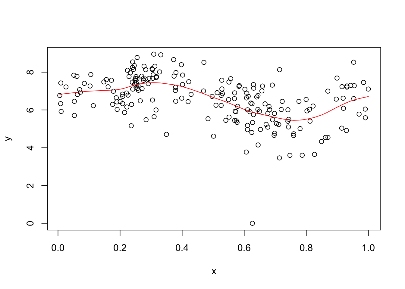 lines(d[,1],predict(d2.tf, d2.tf.cv$lambda.min)$fit,col=2,lwd=3)