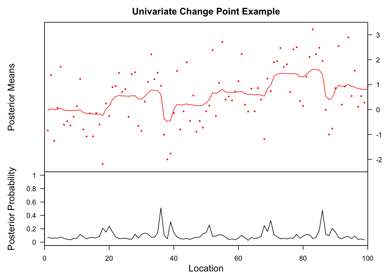 plot(eg1.bcp, main = "Univariate Change Point Example")