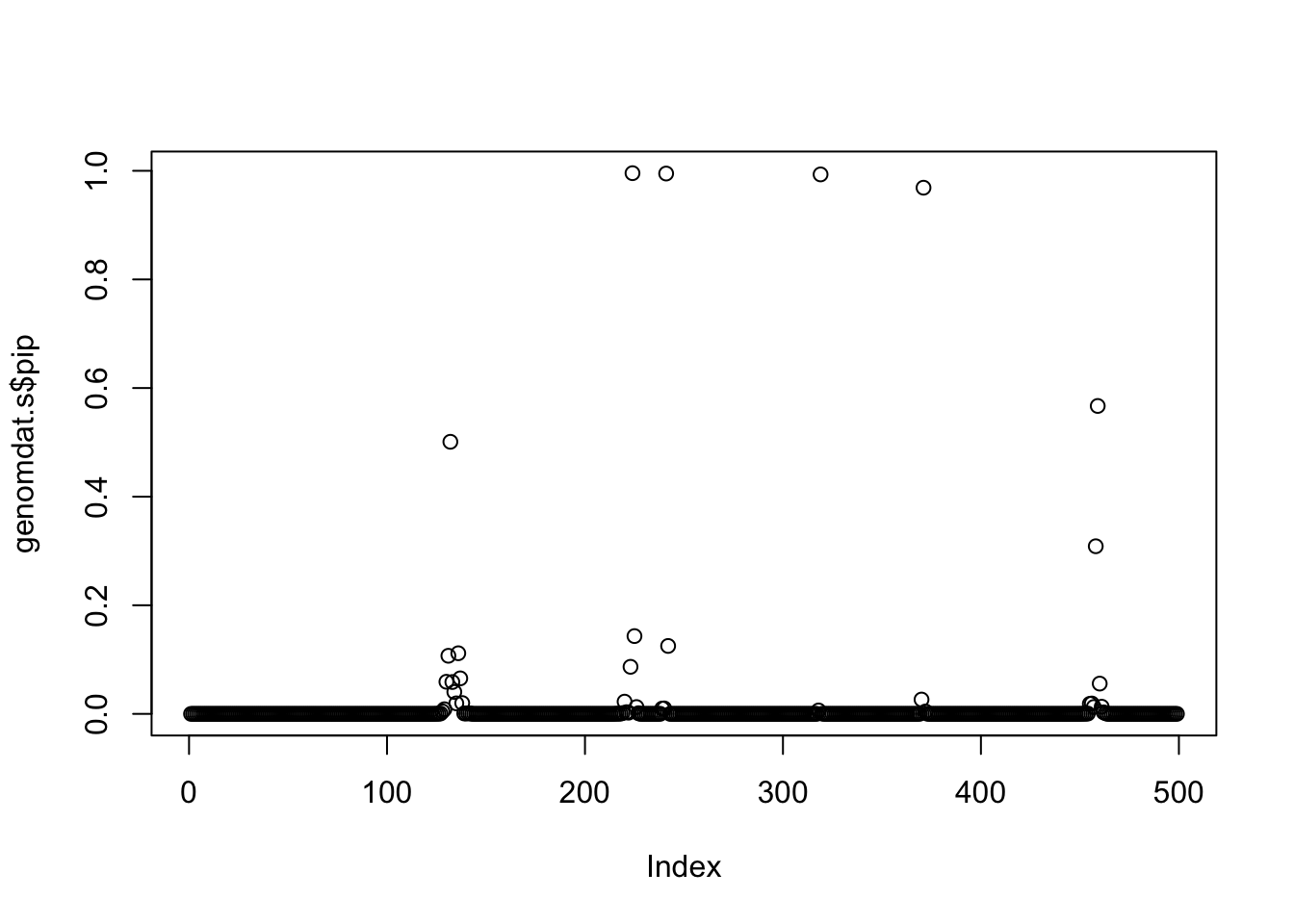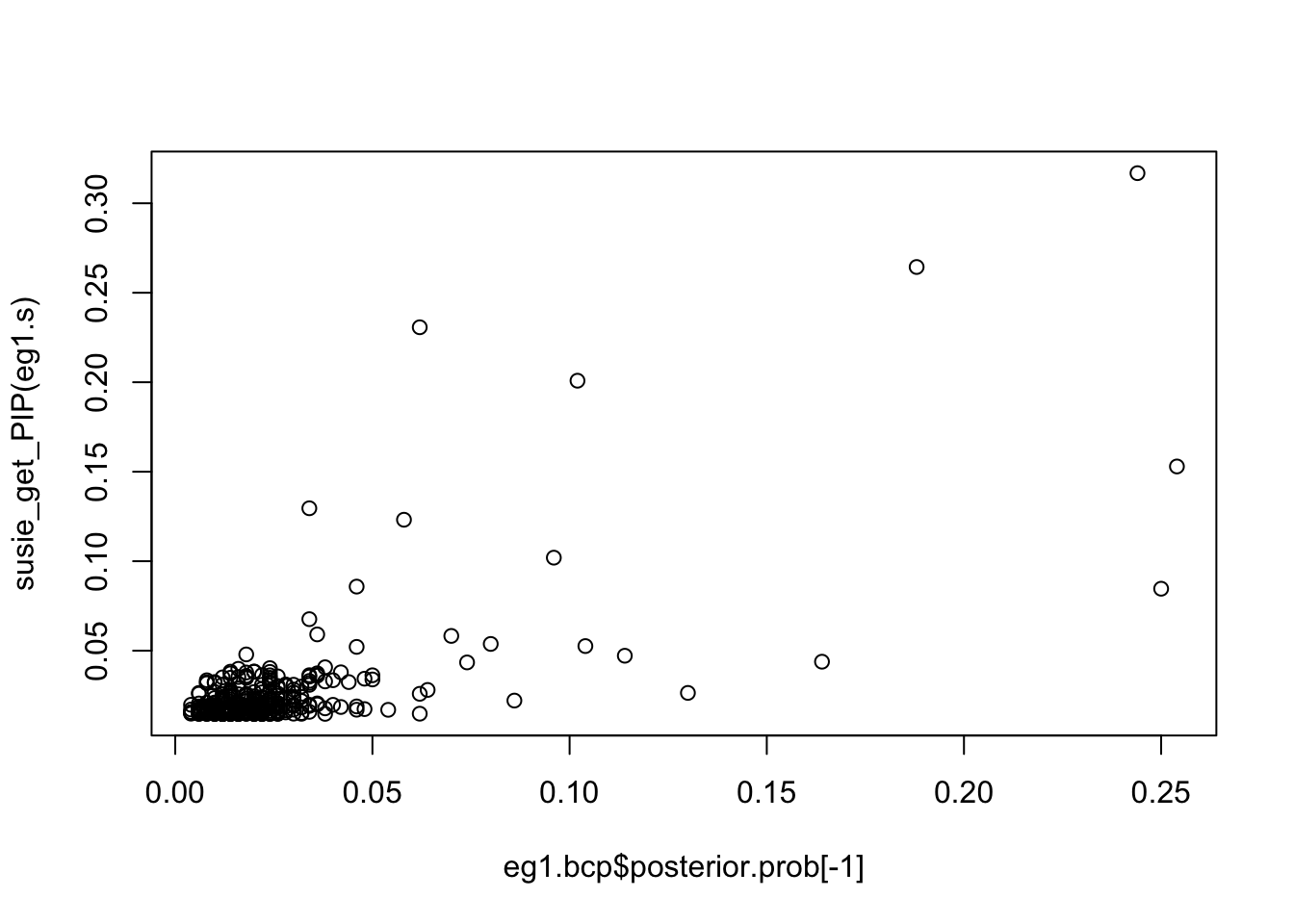 plot(eg1.bcp$posterior.prob[-1], susie_get_PIP(eg1.s))
