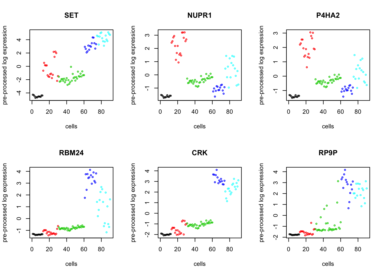 main = genenames[sorted_p$ix[i]], cex=0.5,