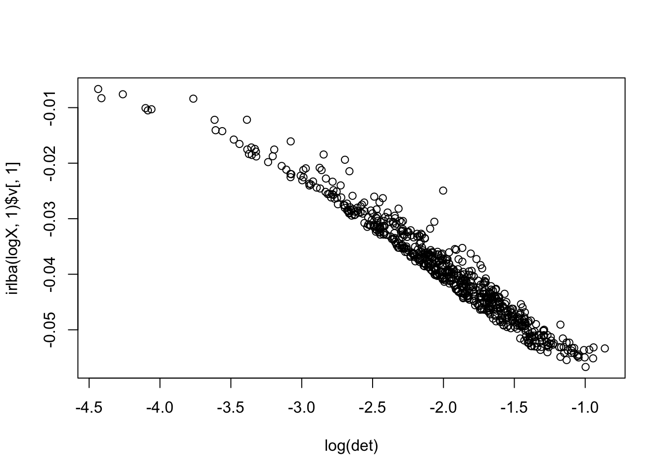 pca1 = irlba(R,2); pca2 = irlba(logX,2)