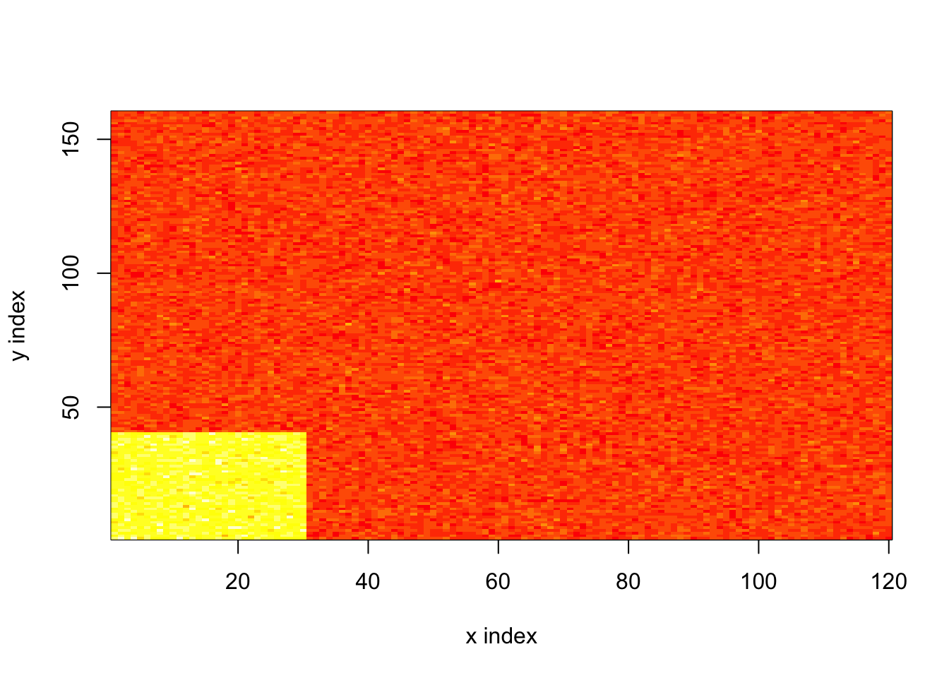 image(x = 1:n, y = 1:p, z = log.lambda, xlab = "x index", ylab = "y index")