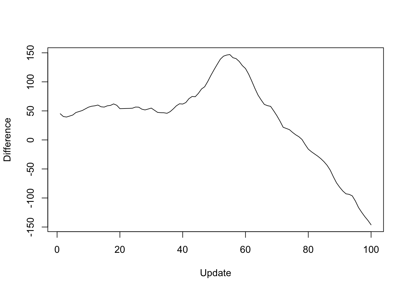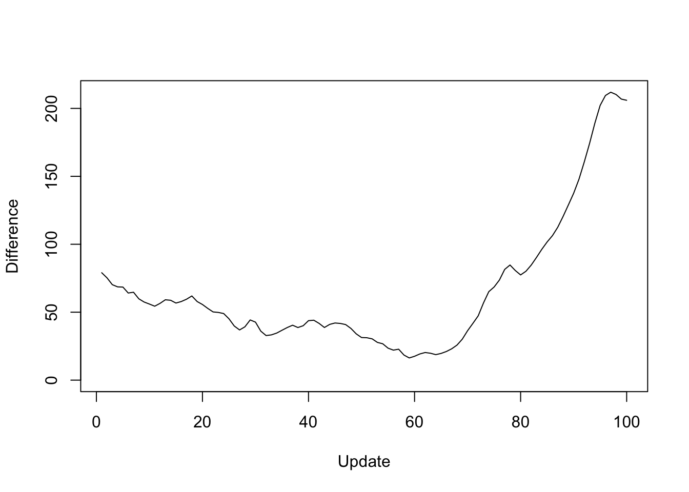 xlim=c(1, 100), xlab="Update", ylab="Objective")