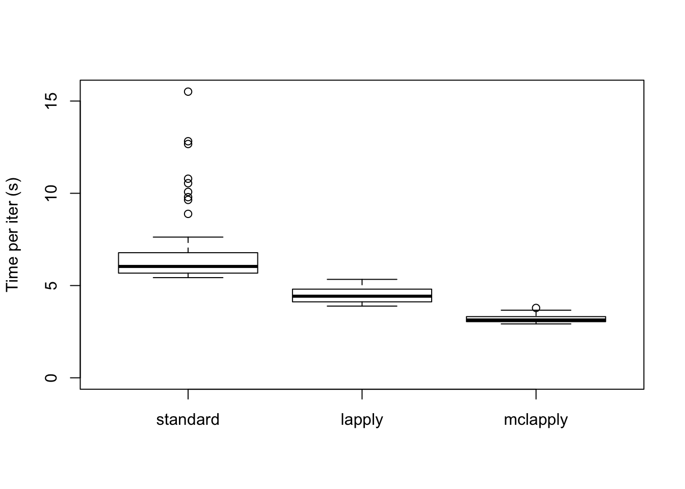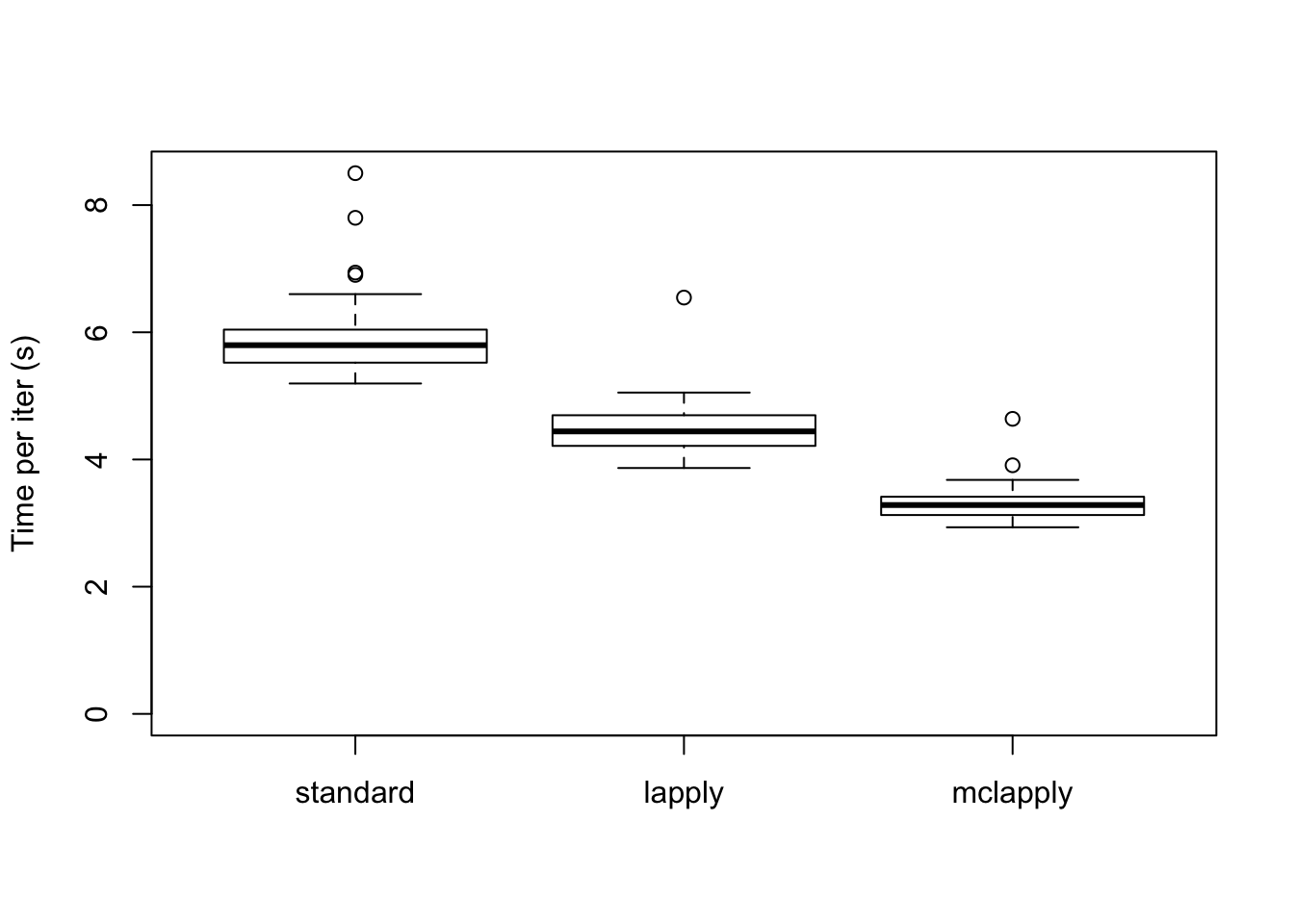 boxplot(data, ylim=c(0, max(data)), ylab="Time per iter (s)")