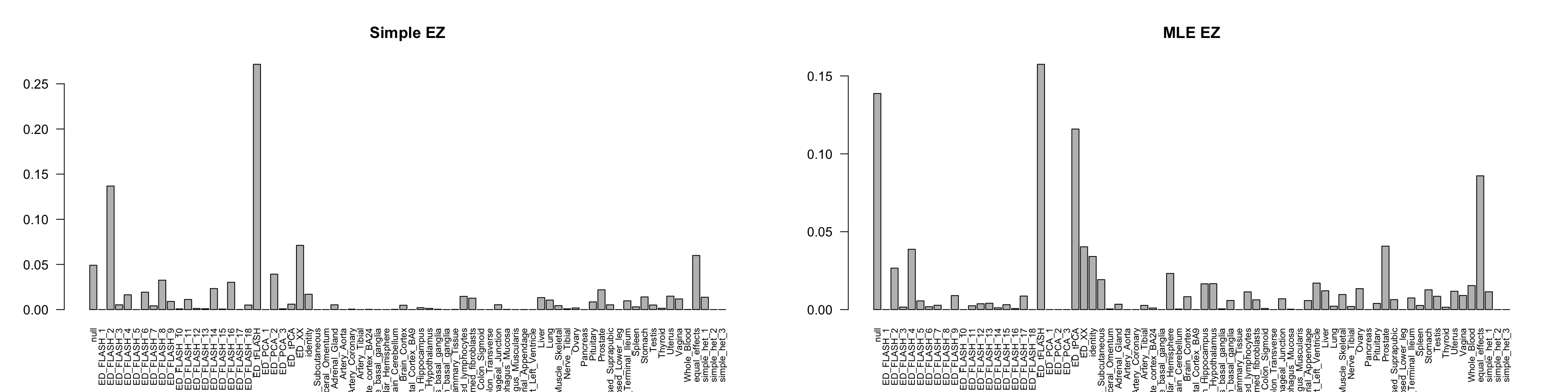 barplot(get_estimated_pi(m_simple_EZ), las=2, cex.names = 0.7, main = 'Simple EZ')