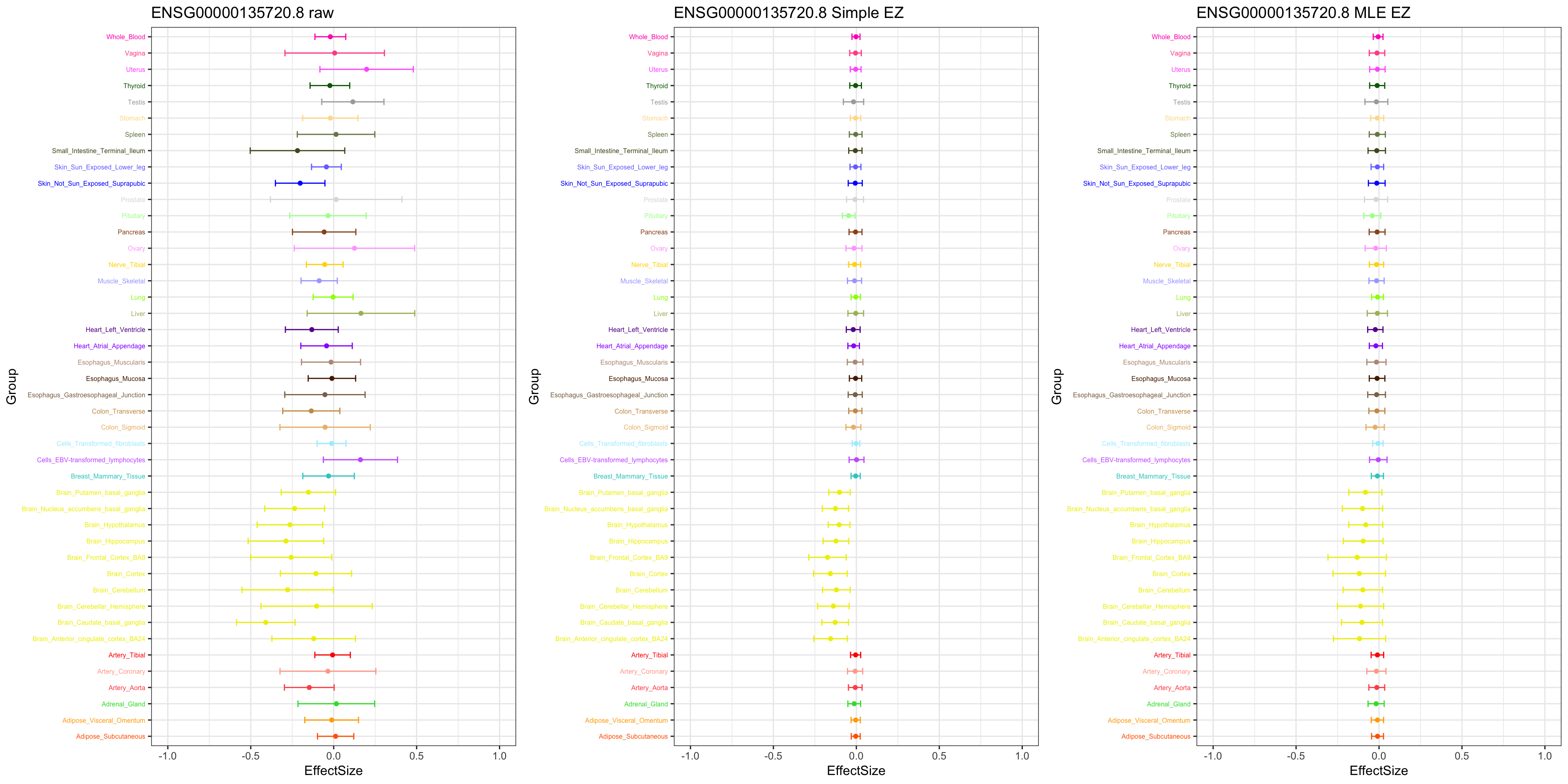 geom_errorbar(aes(ymin=EffectSize-1.96*se, ymax=EffectSize+1.96*se), width=0.4, show.legend = FALSE, color=gtex.colors) +