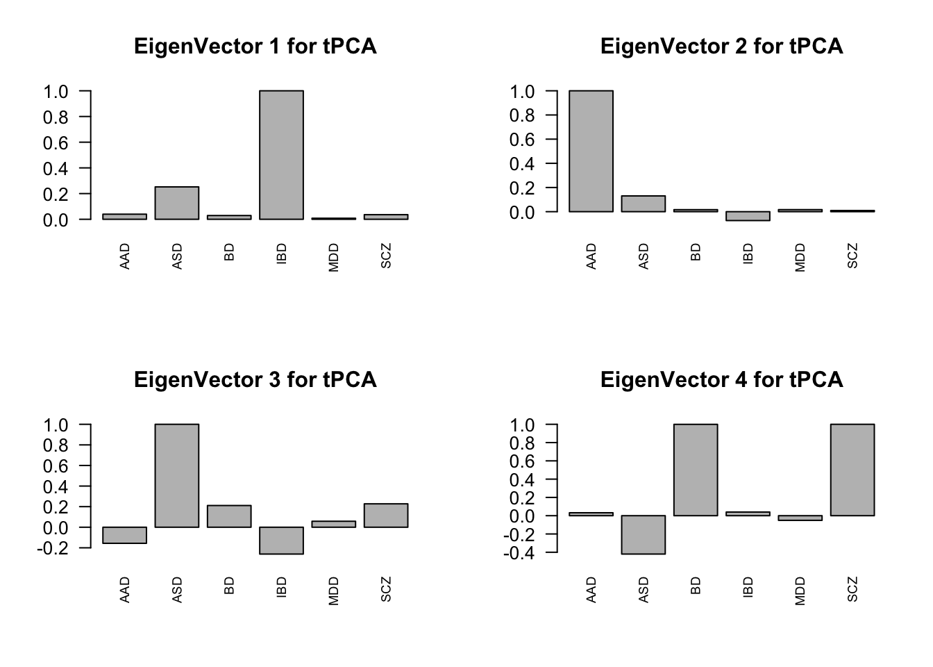 las = 2, main = paste0("EigenVector ", j, " for tPCA"))