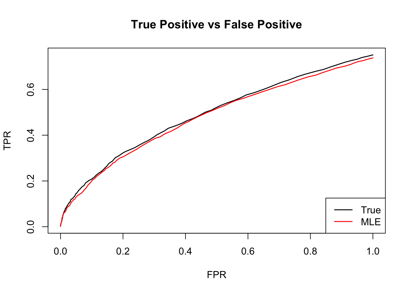 We want to estimate \(\rho\) \[ \left(\begin{matrix} \hat{x} \\ \hat{y} \end{matrix} \right) | \left(\begin{matrix} x \\ y \end{matrix} \right) \sim N(\left(\begin{matrix} \hat{x} \\ \hat{y} \end{matrix} \right) ; \left(\begin{matrix} x \\ y \end{matrix} \right), \left( \begin{matrix} 1 & \rho \\ \rho & 1 \end{matrix} \right)) \] \[ \left(\begin{matrix} x \\ y \end{matrix} \right) \sim \sum_{k=0}^{K} \pi_{k} N( \left(\begin{matrix} x \\ y \end{matrix} \right); 0, U_{k} ) \] \(\Rightarrow\) \[ \left(\begin{matrix} \hat{x} \\ \hat{y} \end{matrix} \right) \sim \sum_{k=0}^{K} \pi_{k} N( \left(\begin{matrix} \hat{x} \\ \hat{y} \end{matrix} \right); 0, \left( \begin{matrix} 1 & \rho \\ \rho & 1 \end{matrix} \right) + U_{k} ) \] \[ \Sigma_{k} = \left( \begin{matrix} 1 & \rho \\ \rho & 1 \end{matrix} \right) + U_{k} = \left( \begin{matrix} 1 & \rho \\ \rho & 1 \end{matrix} \right) + \left( \begin{matrix} u_{k11} & u_{k12} \\ u_{k21} & u_{k22} \end{matrix} \right) = \left( \begin{matrix} 1+u_{k11} & \rho+u_{k12} \\ \rho+u_{k21} & 1+u_{k22} \end{matrix} \right) \] Let \(\sigma_{k11} = \sqrt{1+u_{k11}}\), \(\sigma_{k22} = \sqrt{1+u_{k22}}\), \(\phi_{k}=\frac{\rho+u_{k12}}{\sigma_{k11}\sigma_{k22}}\)
