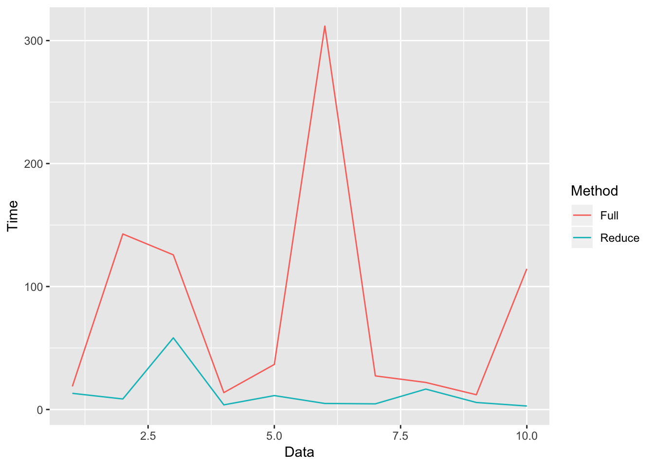 legend('bottomright', c('True','Trun', 'Full', 'Reduce', 'Reduce+Full'),col=c('black','blue', 'red','darkorchid','darkgoldenrod'),